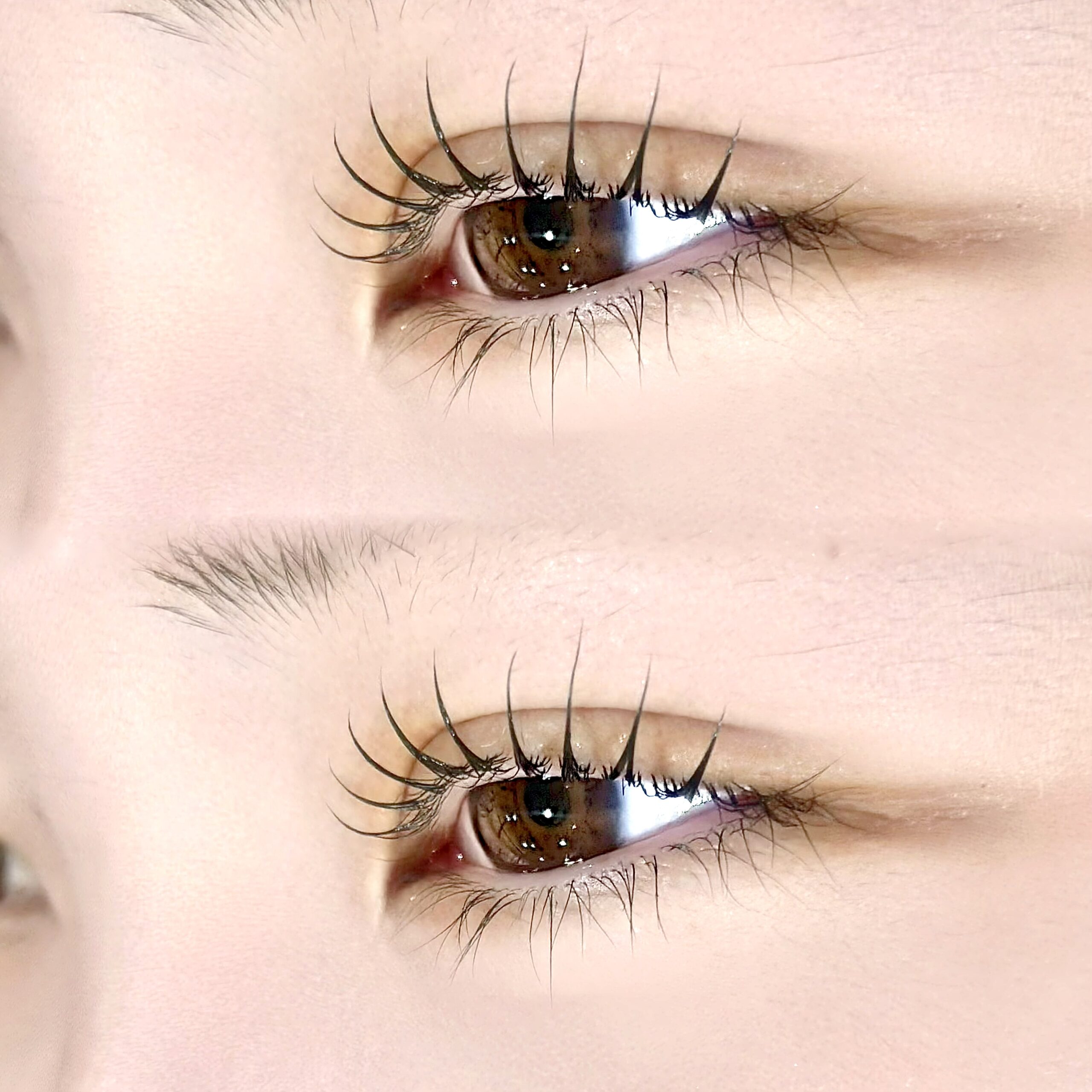 下向きまつ毛のお客様には、立ち上げカール × カールのMIXまつ毛パーマデザインが人気です