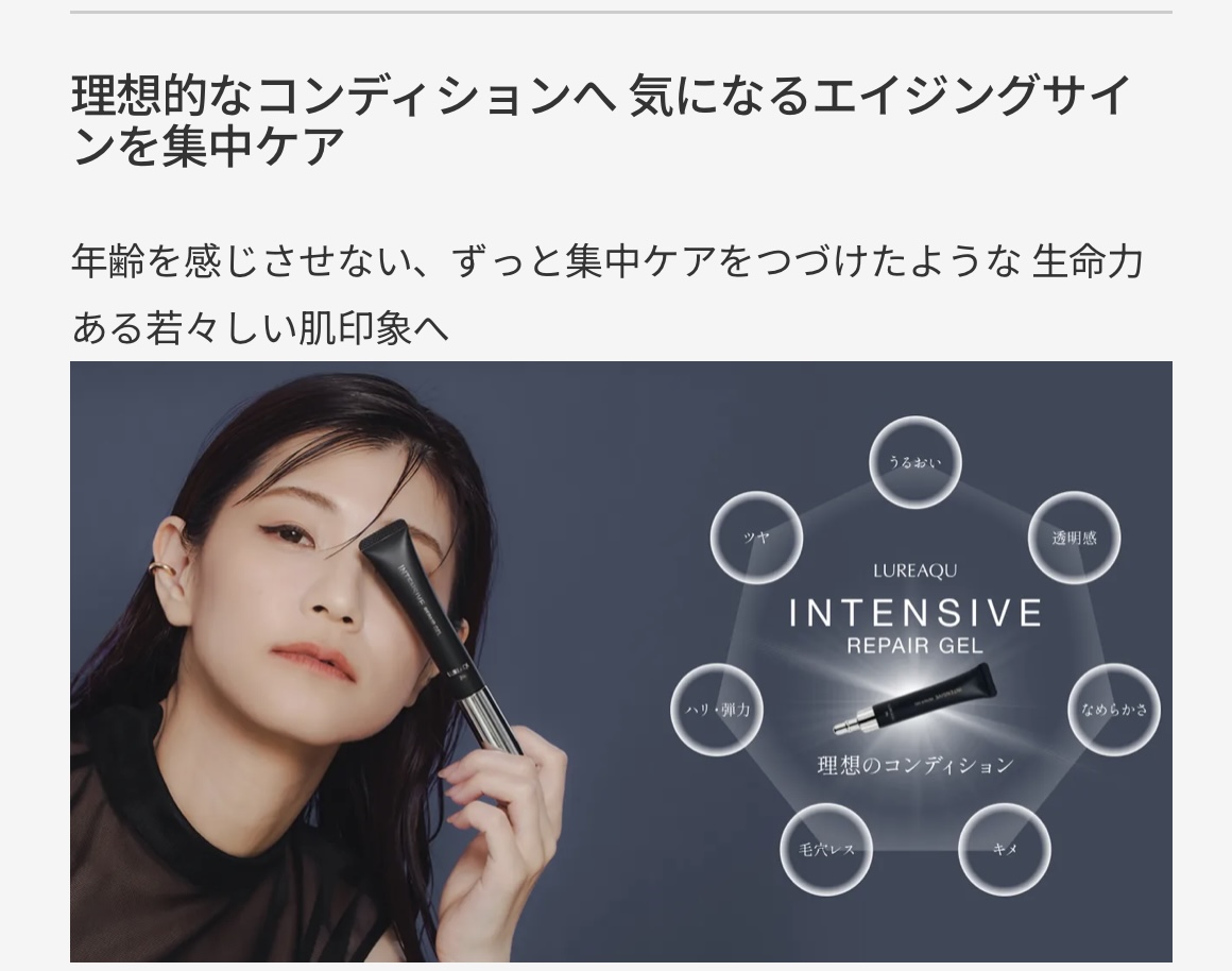 ルリーク インテンシブ リペアジェルは、目元・口元など皮膚が薄く乾燥しやすい部分のために開発された高機能保湿ジェルです。