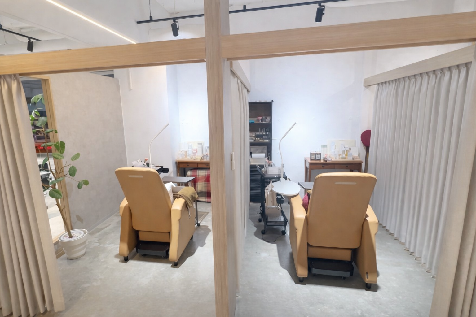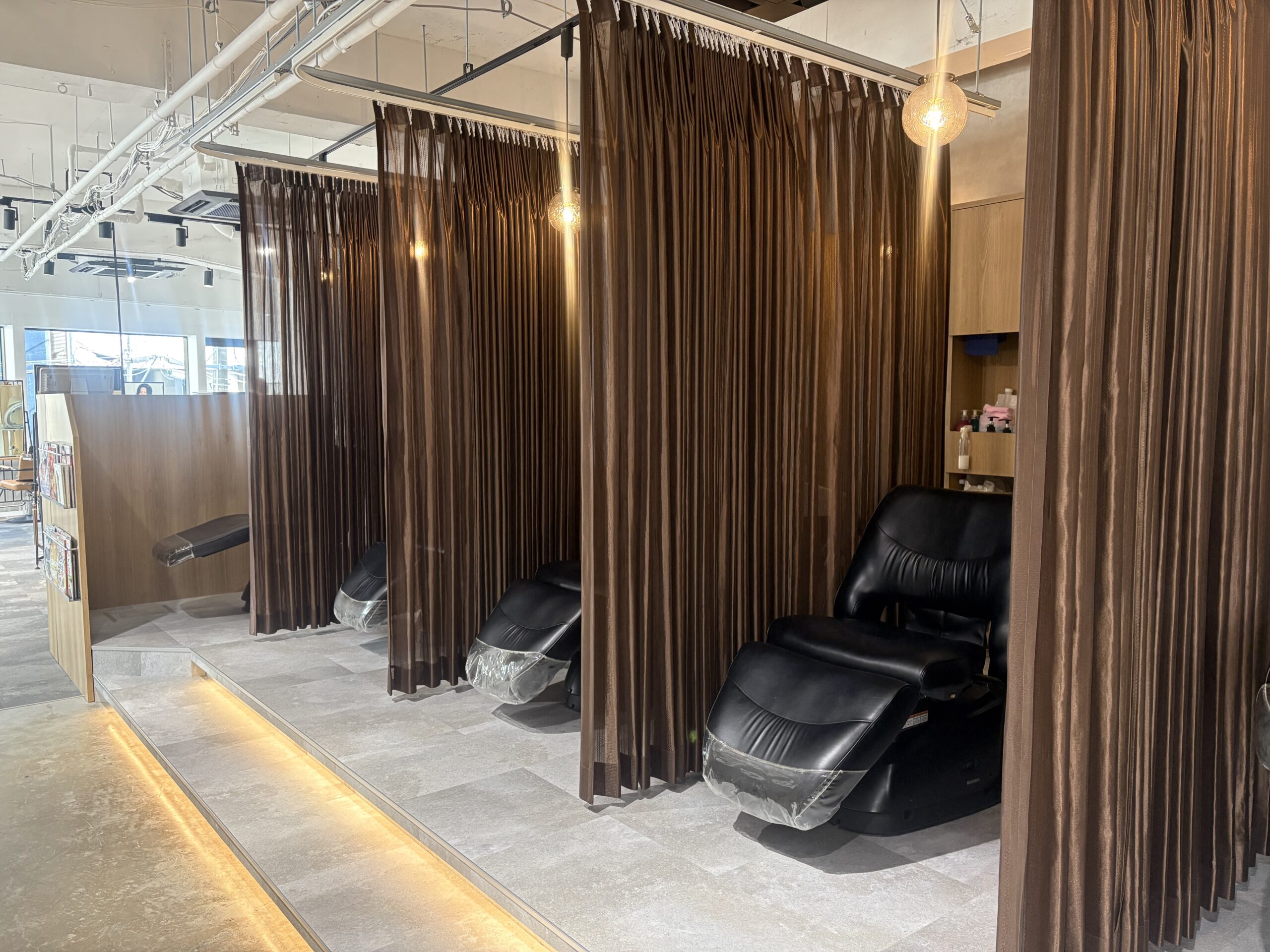 カーテンで仕切られたプライベートな空間で半個室になっているので周りの視線が気にならず、施術中もリラックスできます🫧