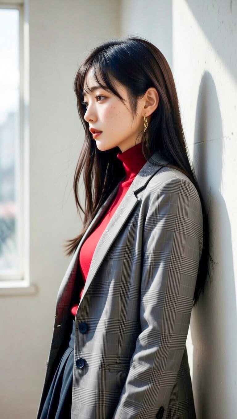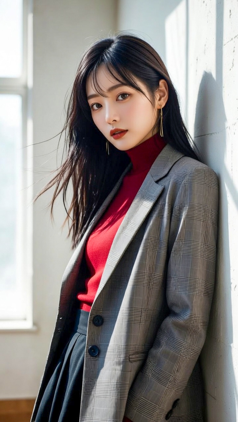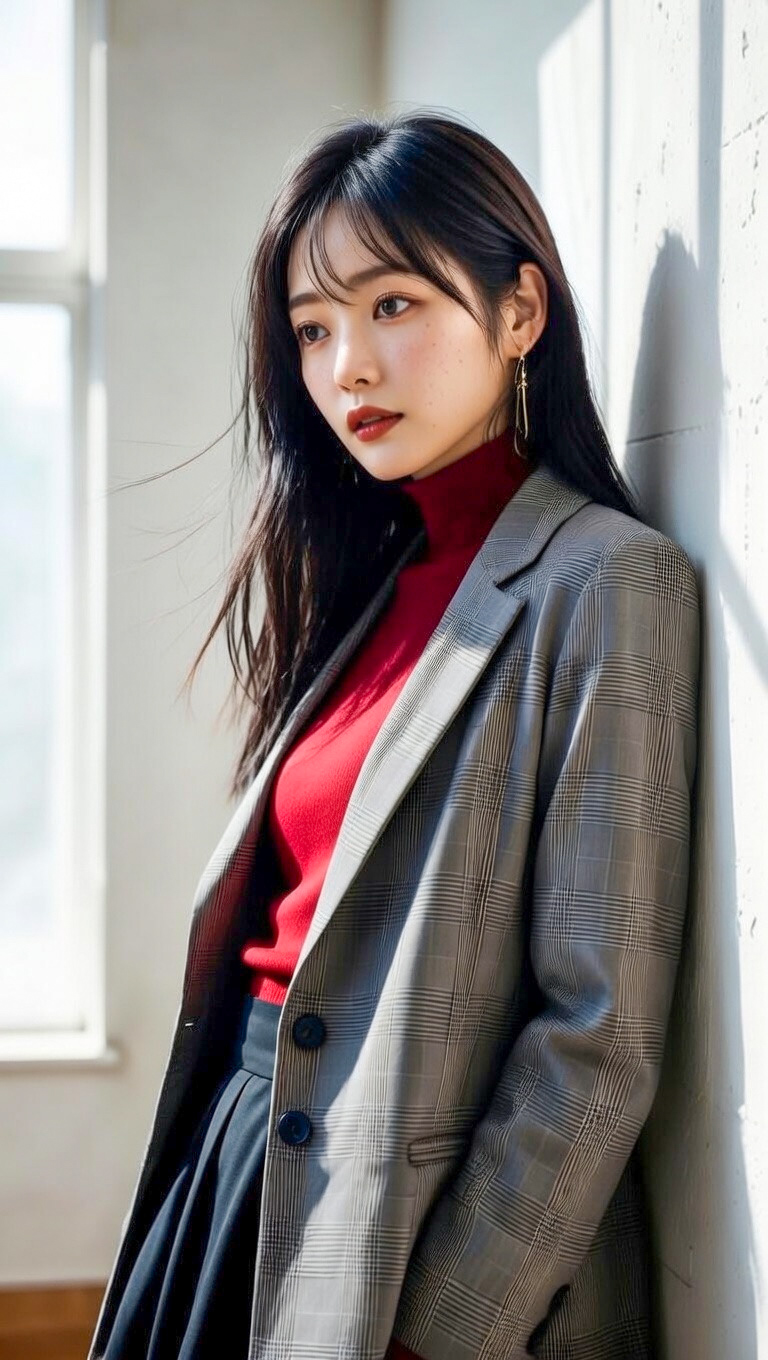 特に、今回のような赤系のトップスとの組み合わせは、ヘアの落ち着いた色味とのコントラストが美しく、女性らしさと知的さを同時に演出してくれます。