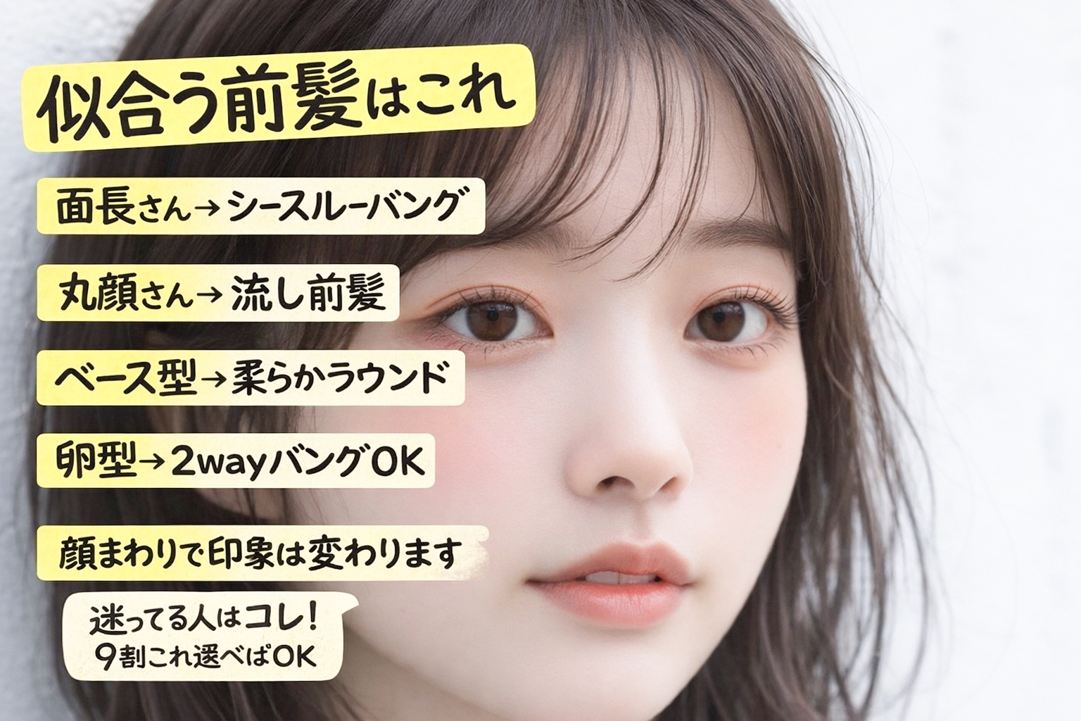 前髪は「好きなデザイン」で選びがちですが、実は顔型とのバランスがとても重要です。