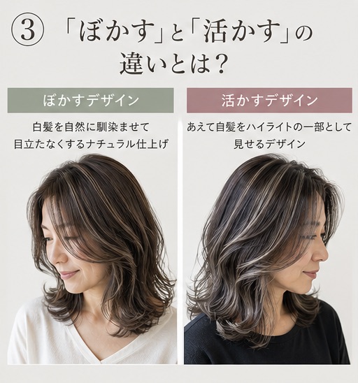 白髪ぼかしハイライトは「色選び」がとても重要です。
